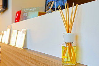 • 院内は柑橘系のアロマの香りでリラックスしてもらうようにしています。従来の薬品の臭いを排除しました。