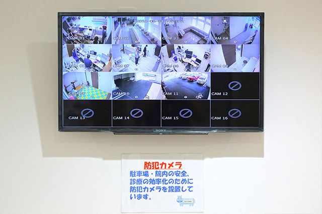 駐車場・院内の安全、診療の効率化のために防犯カメラを設置しています。