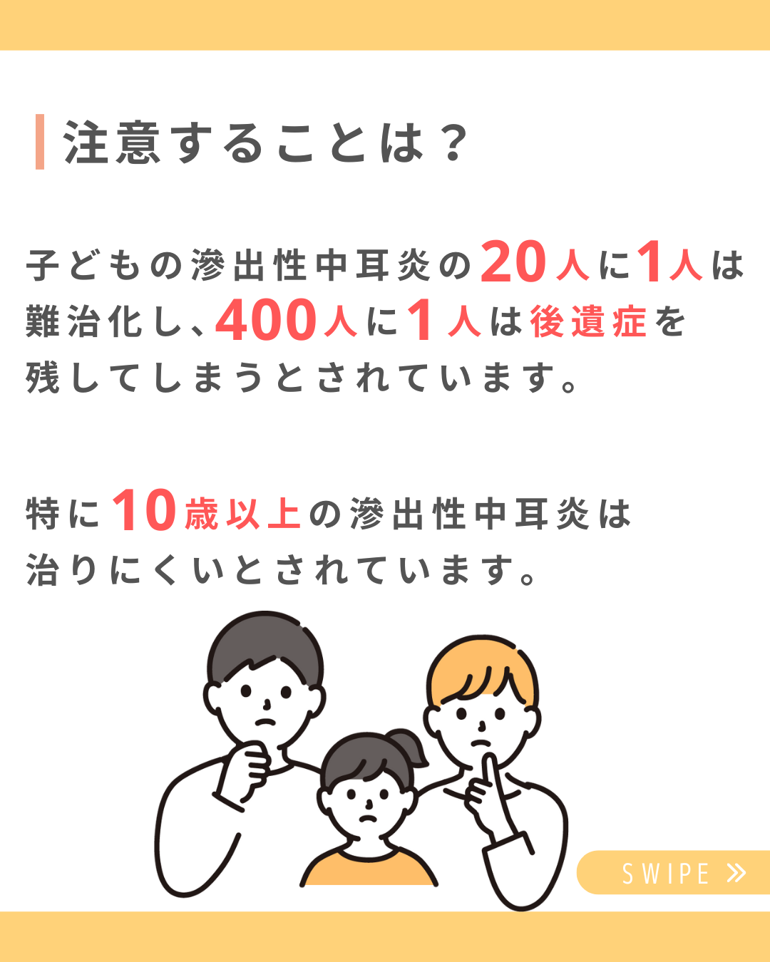 特に10歳以上の滲出性中耳炎は治りにくいとされています。