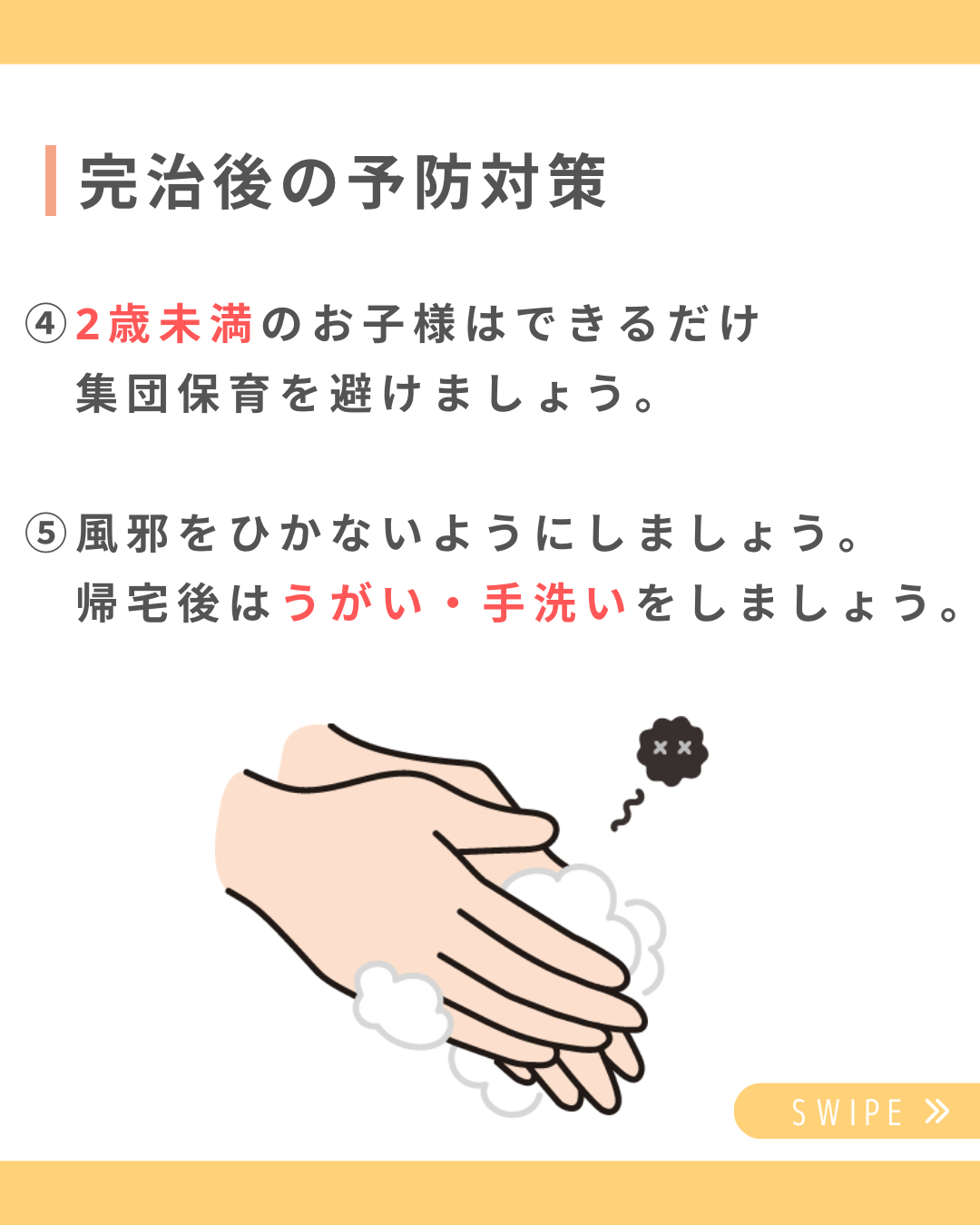 ④2歳未満のお子さまはできるだけ集団保育を避けましょう。