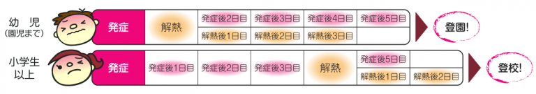 熱が下がっても感染力は持続するため、解熱後も自宅安静が必要となります。